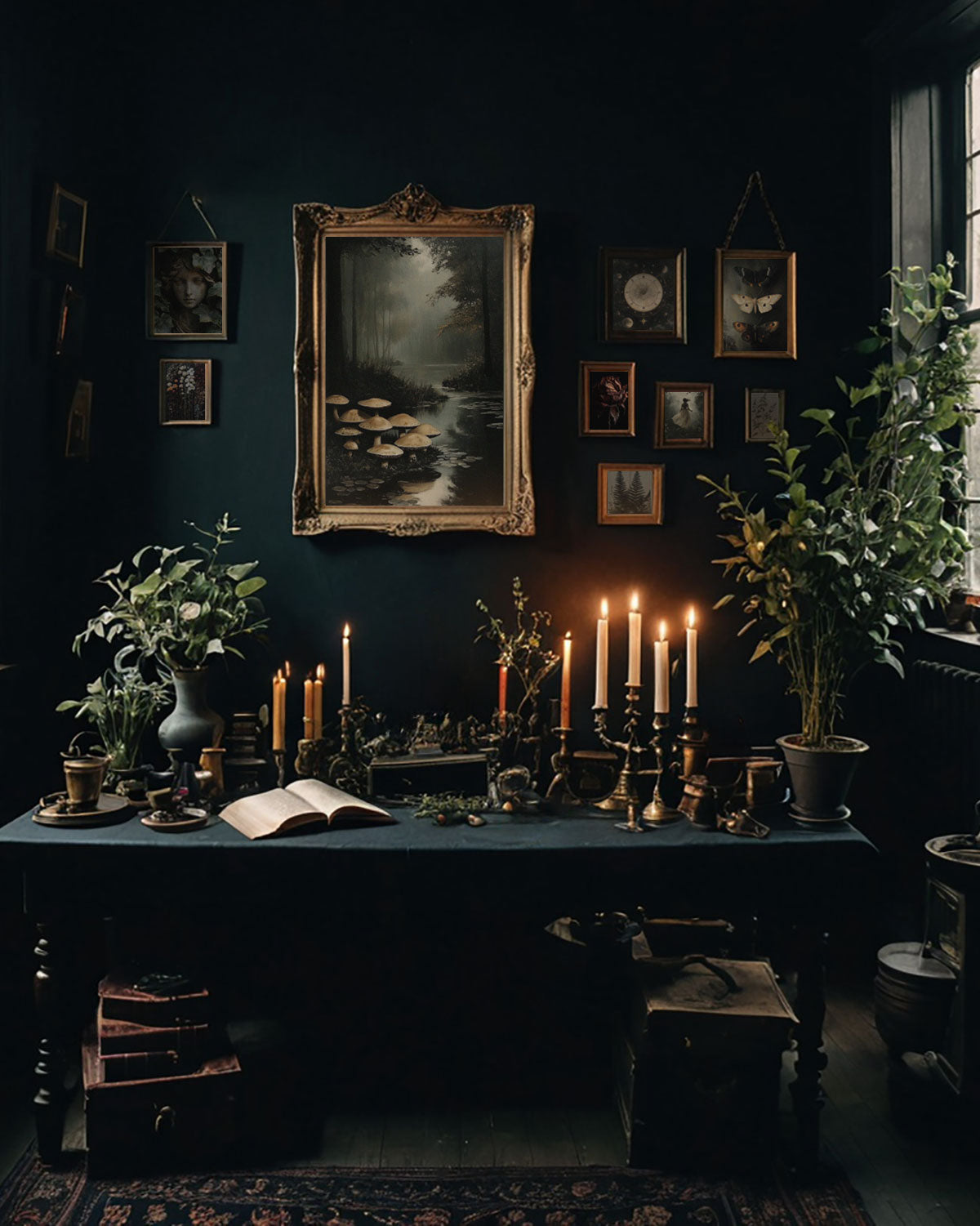 Dark academia decor is an interior style inspired by classical literature, historic architecture, and moody scholarly spaces. It typically features deep colours, antique elements, gothic details, vintage artwork, and layered textures. Art prints within this aesthetic often draw on symbolism, old world imagery, and romantic, intellectual themes.