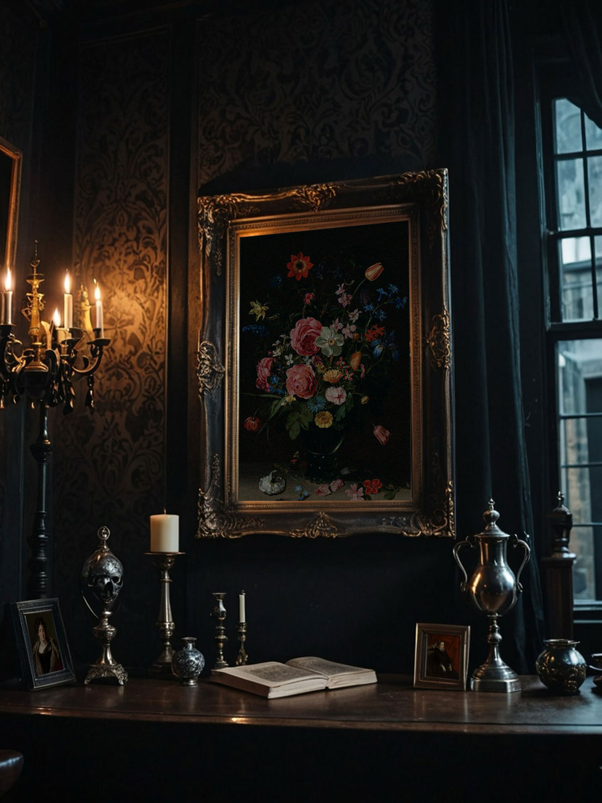 • Gothic art prints and dark floral artwork